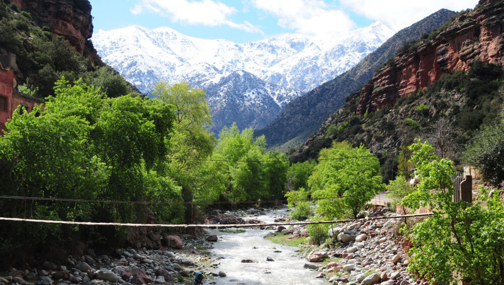 Départ de Marrakech : Prise en charge à votre hôtel ou riad à 8h00. Direction le sud, en traversant les gorges de Moulay Brahim, jusqu’aux hauteurs du Haut Atlas.